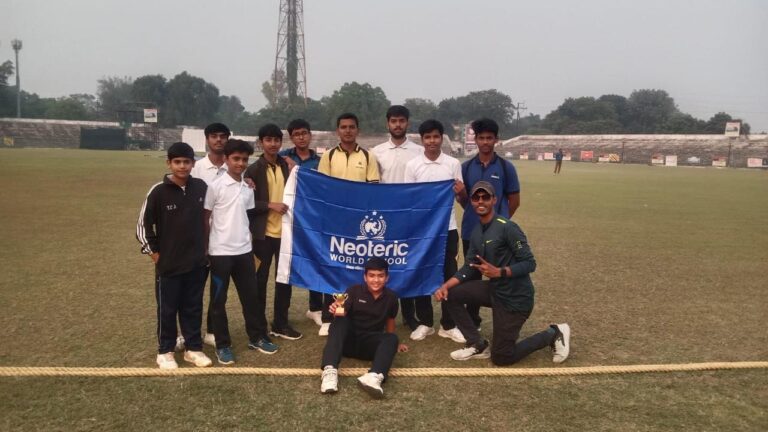 We are delighted to announce that Neoteric World School secured a fantastic victory against Delhi Public School in the cricket match held at Roop Singh Stadium. Our team displayed outstanding skill, teamwork, and determination throughout the game.